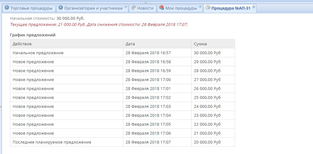 Процедура перейдёт в статус «Ожидание проведения торгов»;